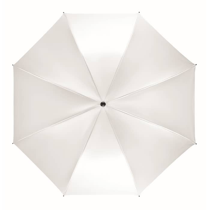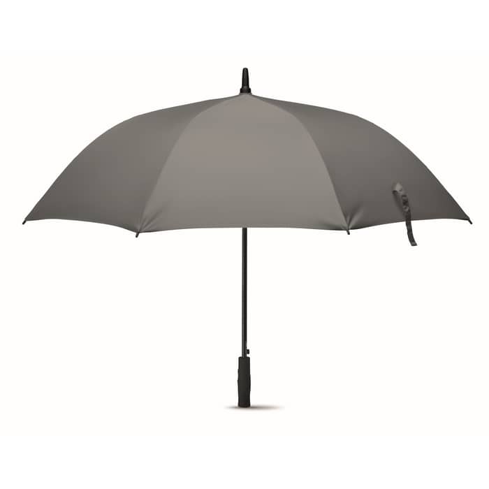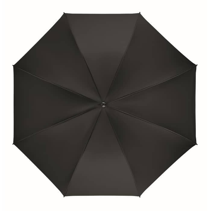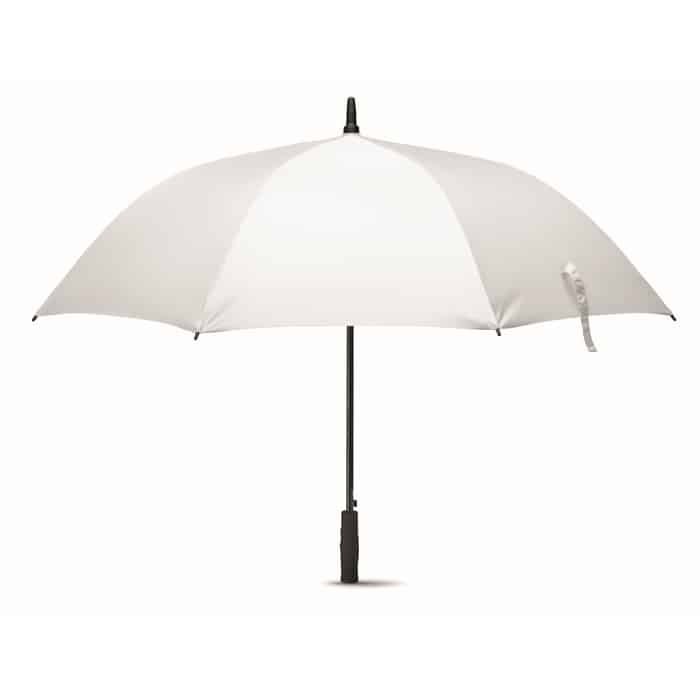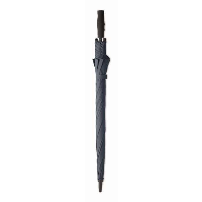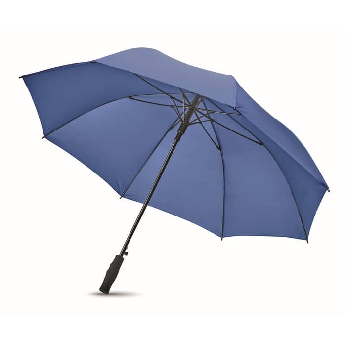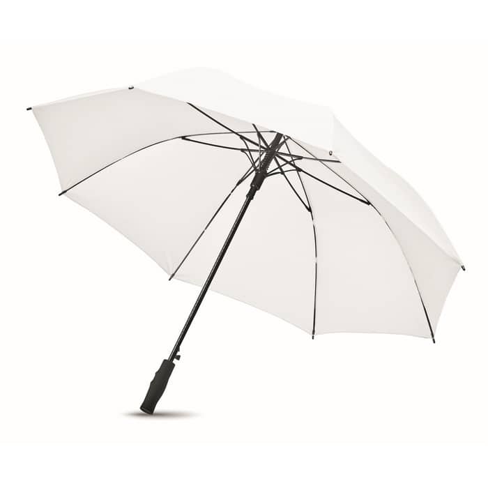 27 Inch windbestendige paraplu met 190T pongee doek, glasvezel stok en baleinen en auto open en sluit handmatig. Door de glasvezel structuur is deze paraplu sterk en toch erg licht van gewicht. De rechte zwarte ABS- handgreep heeft een rubberen afwerking waardoor hij comfortabel in de hand ligt. Deze paraplu heeft zwarte plastic uiteinden en bovenkant en heeft een handmatig sluitmechanisme. Zelfs als het waait en regent, houdt deze stormparaplu je droog.