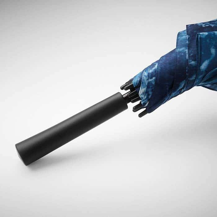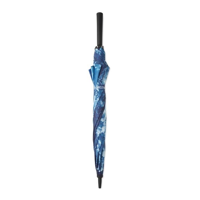 Blijf droog én val op tijdens regenachtige dagen met deze op maat gemaakte paraplu. Laat jouw ontwerp of logo stralen en geef je merk maximale zichtbaarheid – in Nederland, België of zelfs daarbuiten!Elke baan van deze paraplu is volledig naar wens aan te passen. Dankzij de all-over bedrukking is vrijwel elk ontwerp mogelijk – van strakke patronen tot levensechte foto’s. Combineer verschillende kleuren per segment voor een uniek en opvallend eindresultaat.