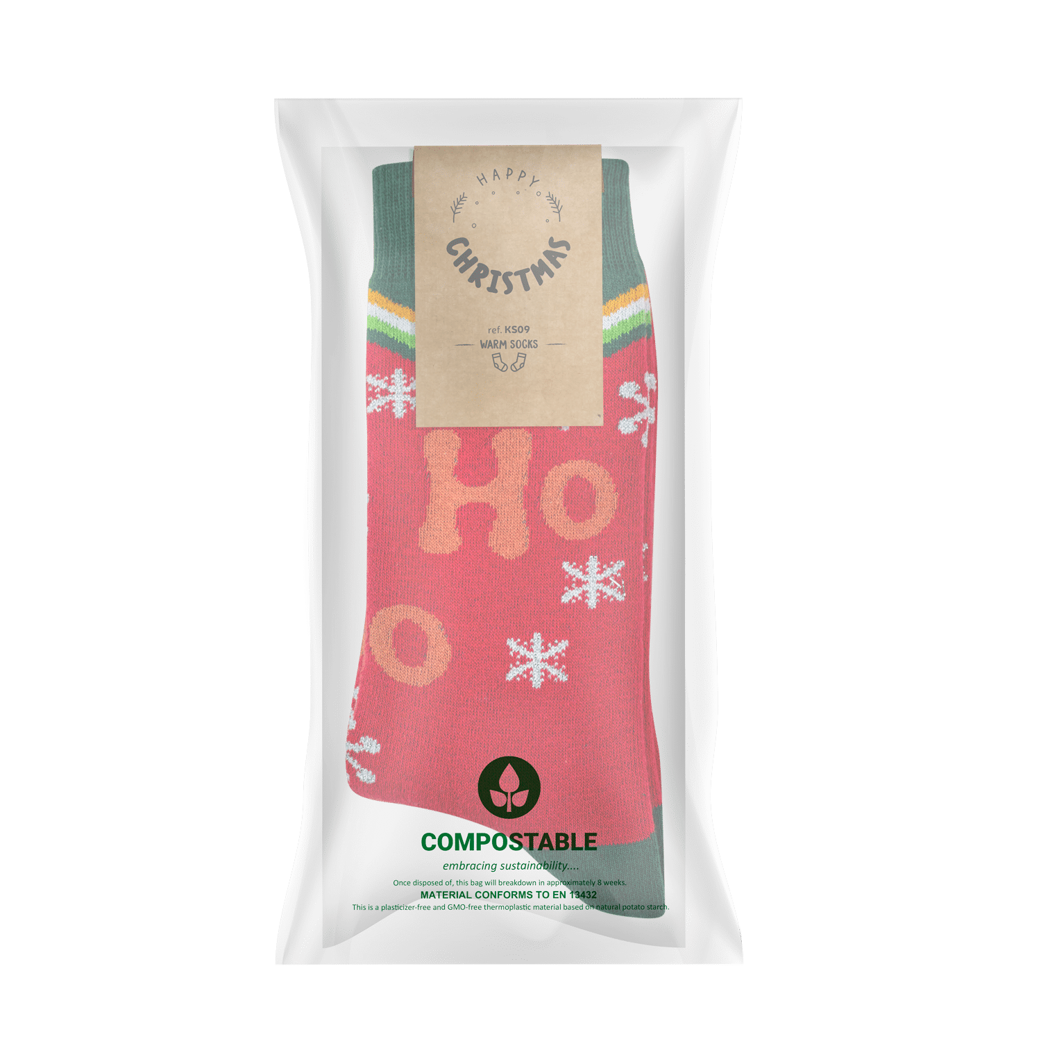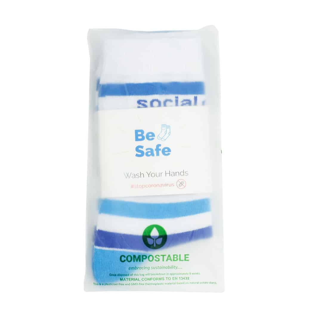Ontdek ultiem comfort en stijl met onze custom-made geweven sokken, met een unieke twist. Elke sok wordt met precisie vervaardigd volgens jouw persoonlijke ontwerp, waardoor je een exclusief stukje fashion bezit. Maar dat is nog niet alles. Elke sok wordt geleverd met een bijpassende full colour te bedrukken kartonnen tag met jouw design. Ze zijn verpakt in composteerbare zakjes en dus dragen onze sokken bij aan een duurzamere wereld. En als kers op de taart, bieden we een scala aan andere verpakkingsmogelijkheden om aan al jouw wensen te voldoen. Kies voor individualiteit, kies voor comfort, kies voor onze custom-made geweven sokken.
