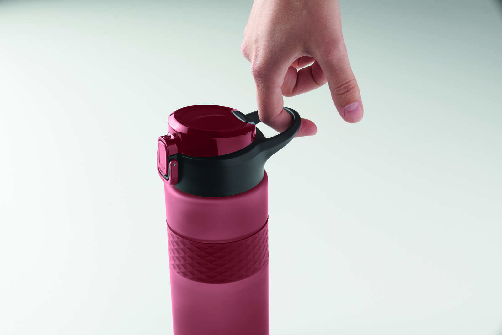 Duurzaam én stijlvol: deze drinkfles is gemaakt van meer dan 50% gerecycled RPET en voorzien van een comfortabele siliconen grip. De handige flip-top deksel met veiligheidsslot en geïntegreerd draagriempje maken deze fles ideaal voor onderweg, op kantoor of tijdens het sporten. Met een inhoud van 700 ml blijf je goed gehydrateerd.