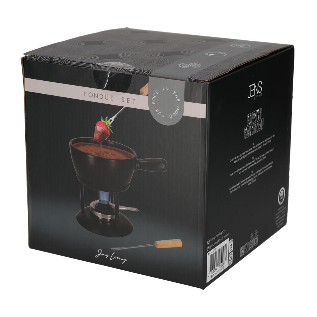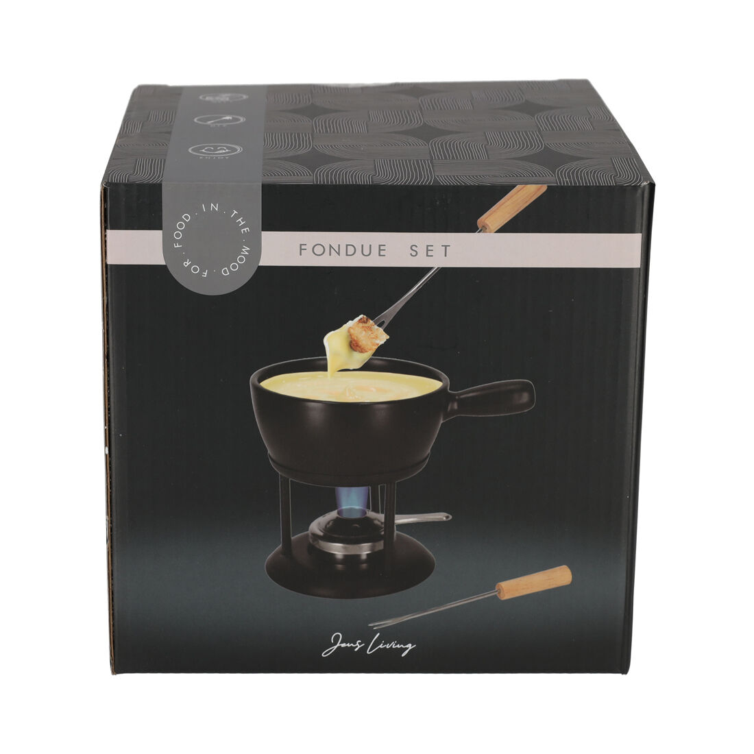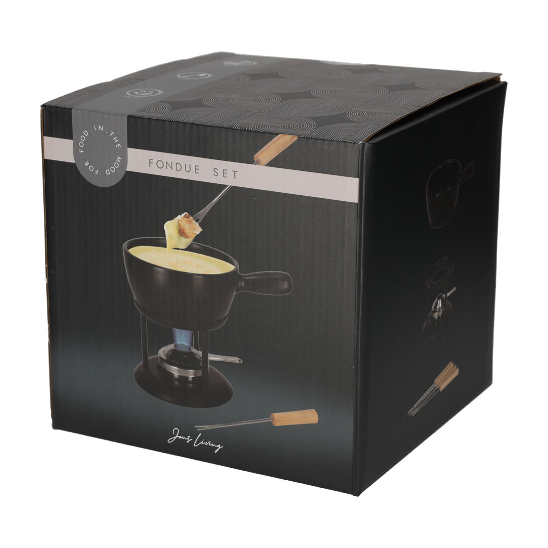 • Inclusief: 4 vorkjes met houten greep, onderstel + brander + deksel