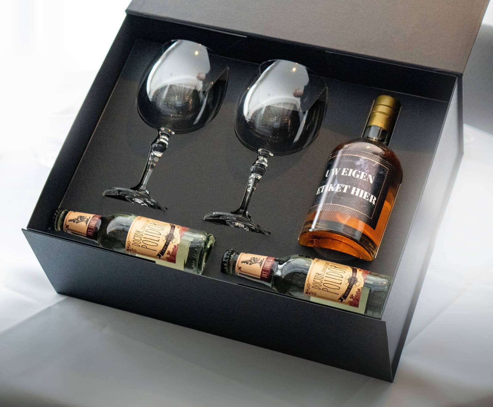 Dit luxe geschenkset is het perfecte geschenk voor ginliefhebbers. Deze elegante set bevat een fles van 100 ml citrus gin, zorgvuldig samengesteld met natuurlijke ingrediënten voor een verfijnde smaakbeleving. De box is stijlvol verpakt en ideaal om iemand te verrassen met een uniek en persoonlijk cadeau. Met de mogelijkheid om de gin te personaliseren met een eigen etiket, biedt deze set een bijzondere en persoonlijke touch. Vraag de extra mogelijkheden op voor het graveren van het glas of een 1 kleurige bedrukking op de doos. Optioneel ook andere smaken beschikbaar.