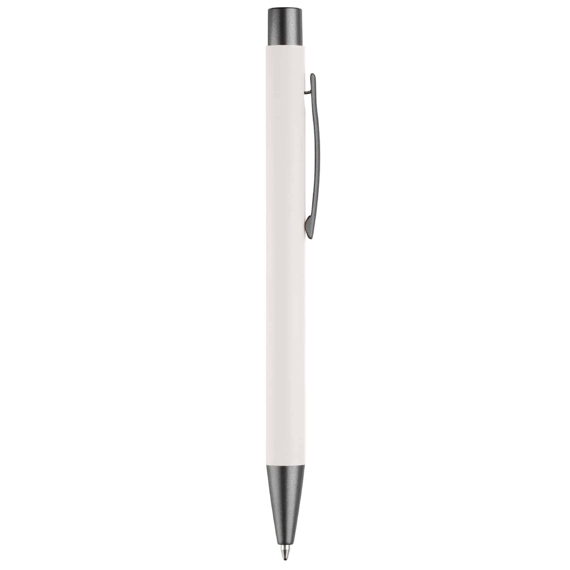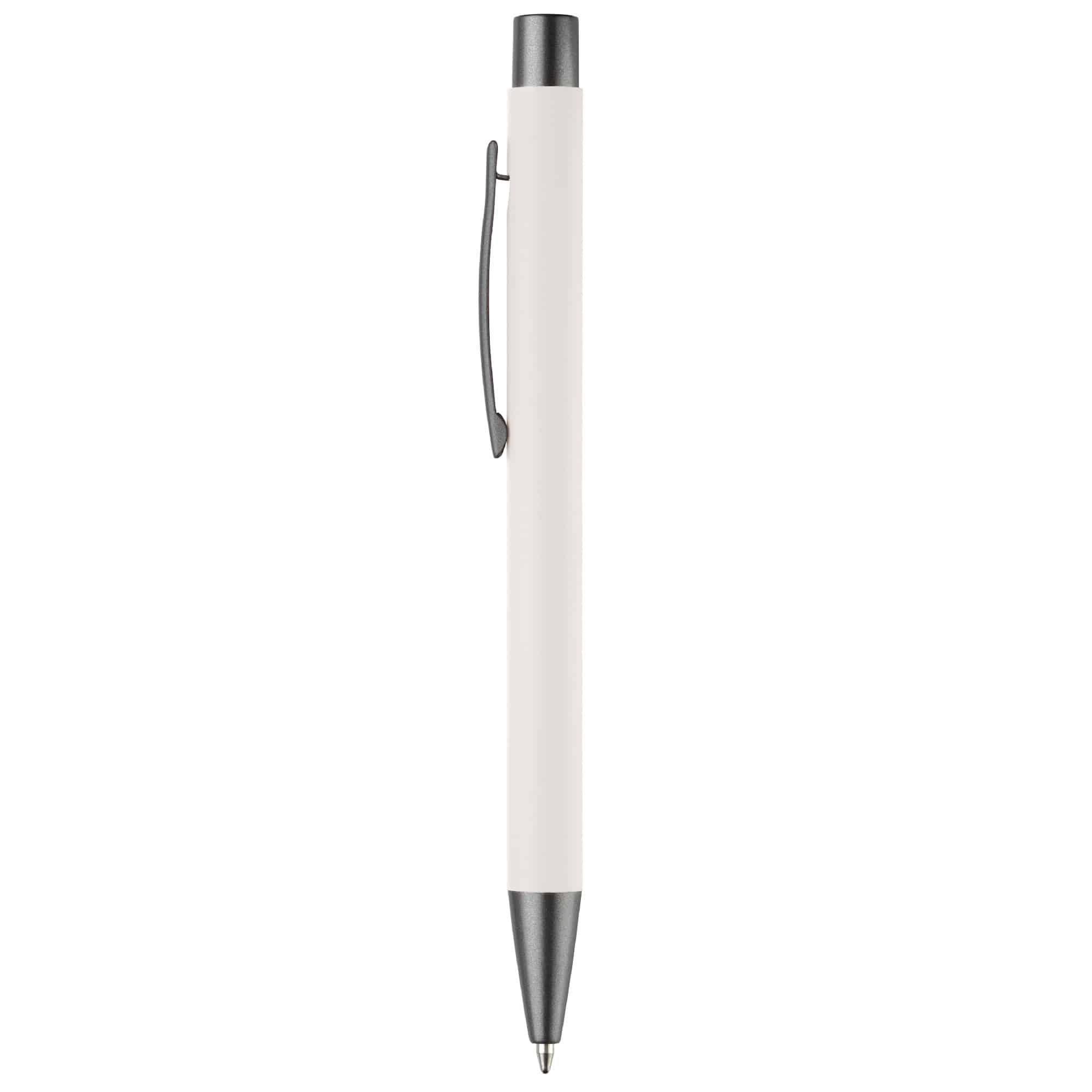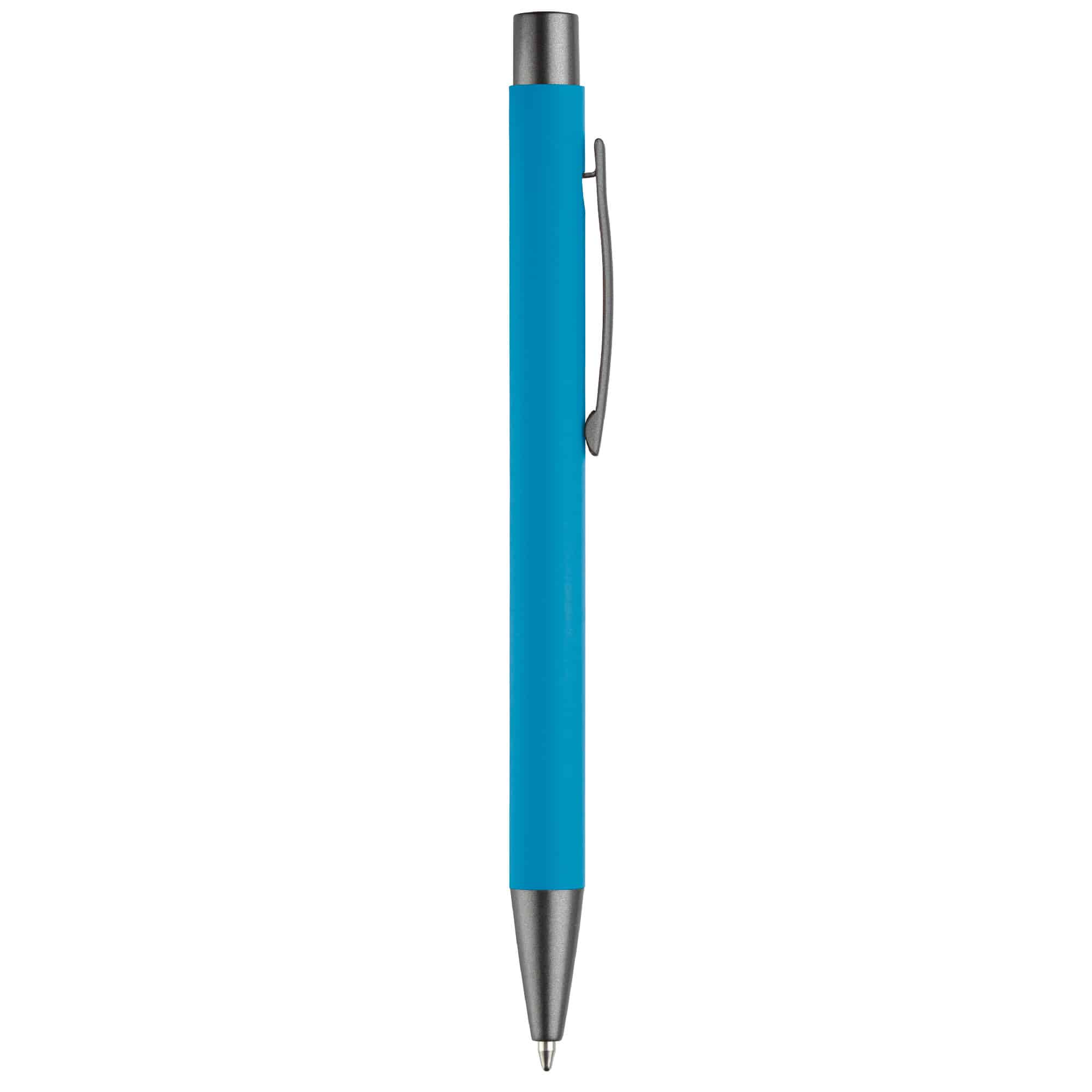 Aluminium balpen met elegante rubberised soft-touch afwerking. Voorzien van stevige metalen clip en leverbaar in moderne kleuren. Blauwschrijvende vulling.