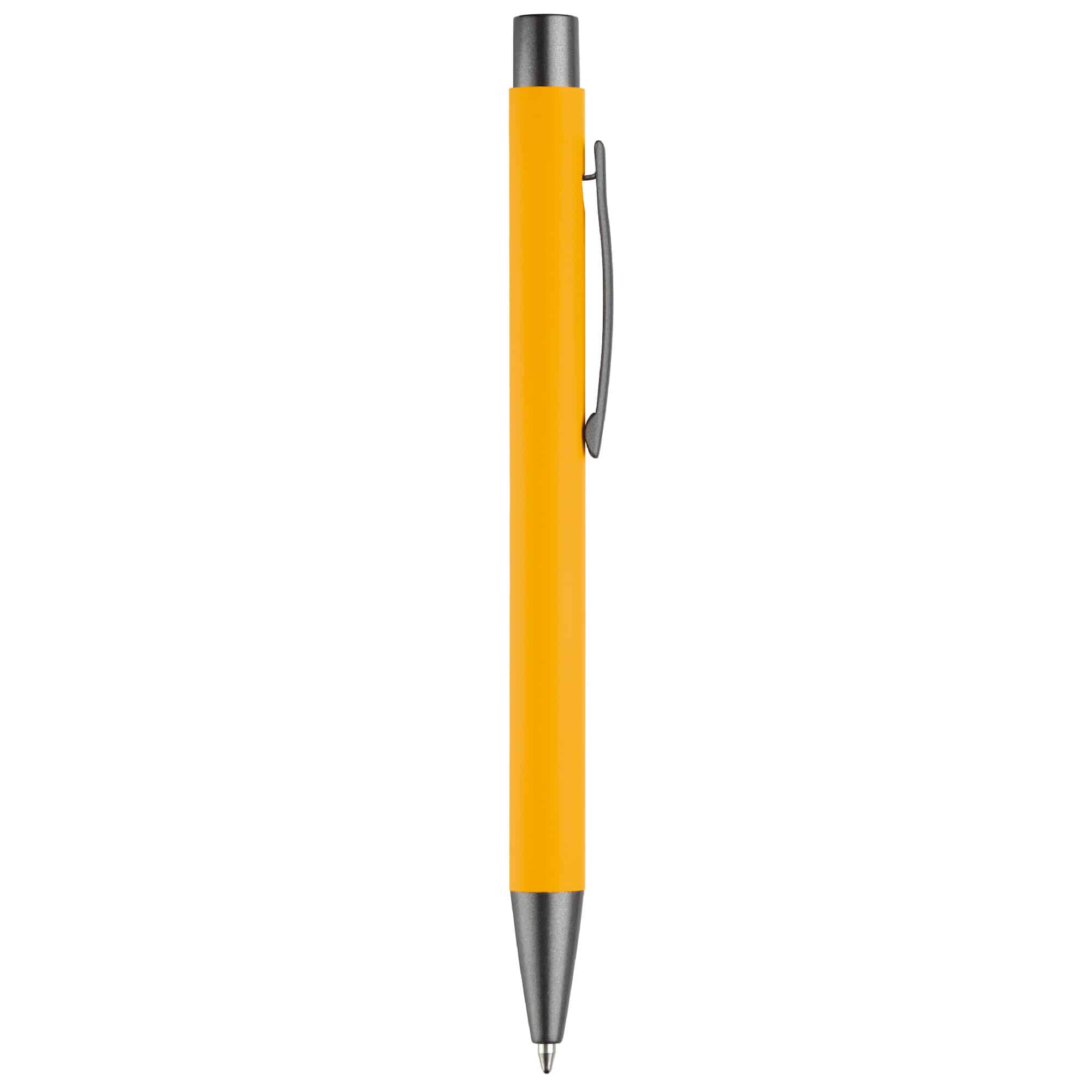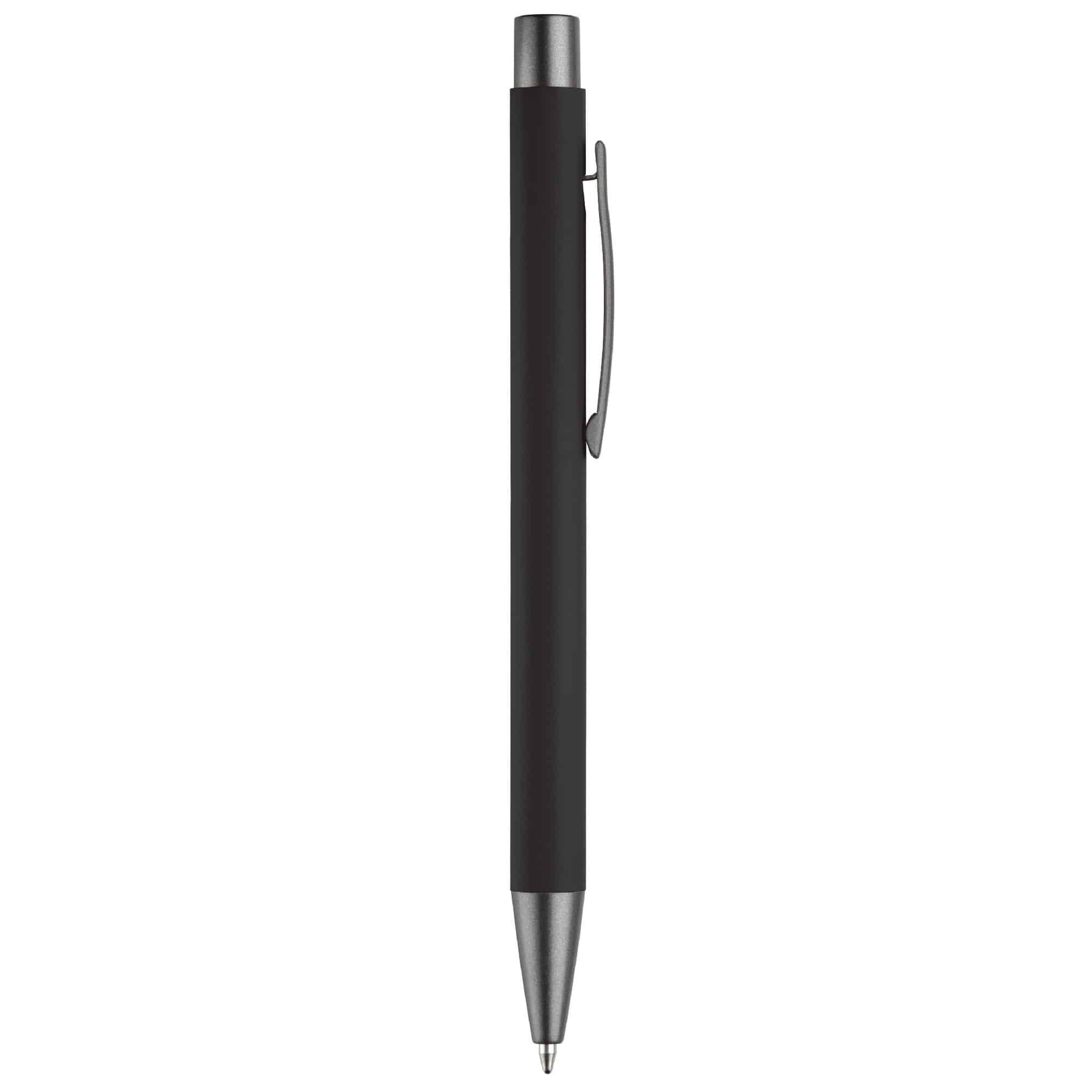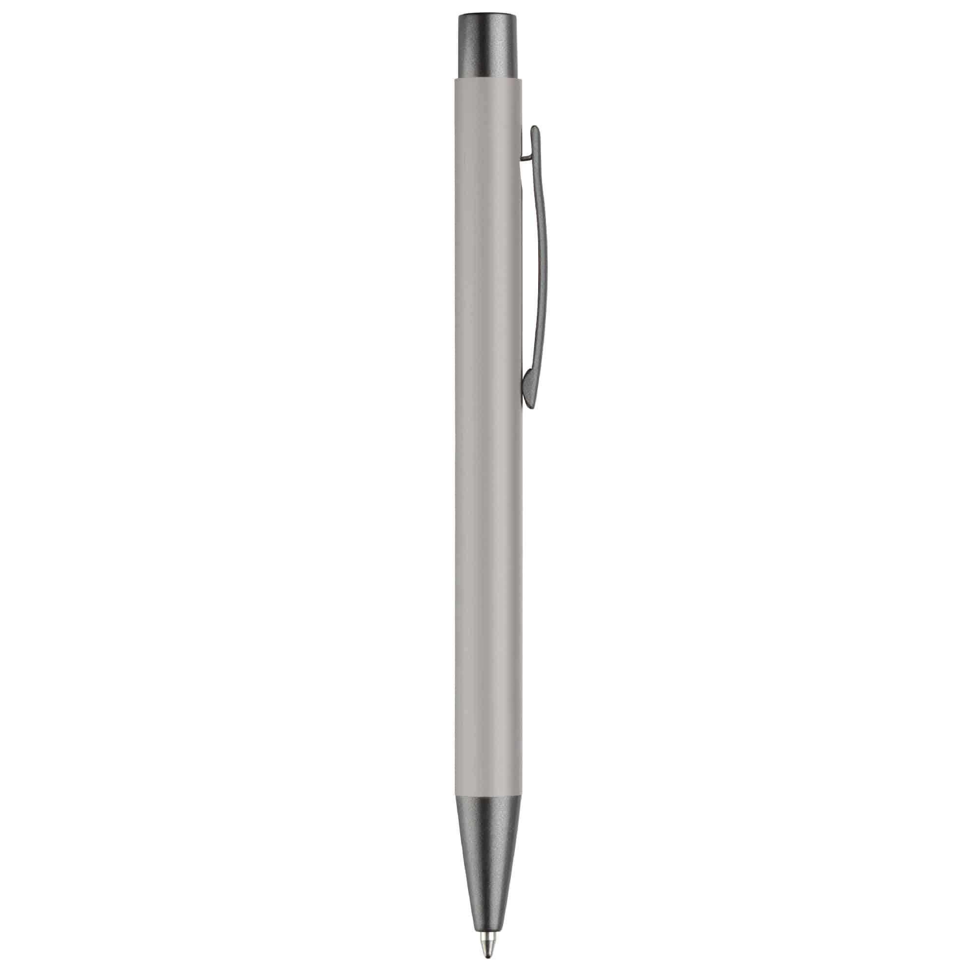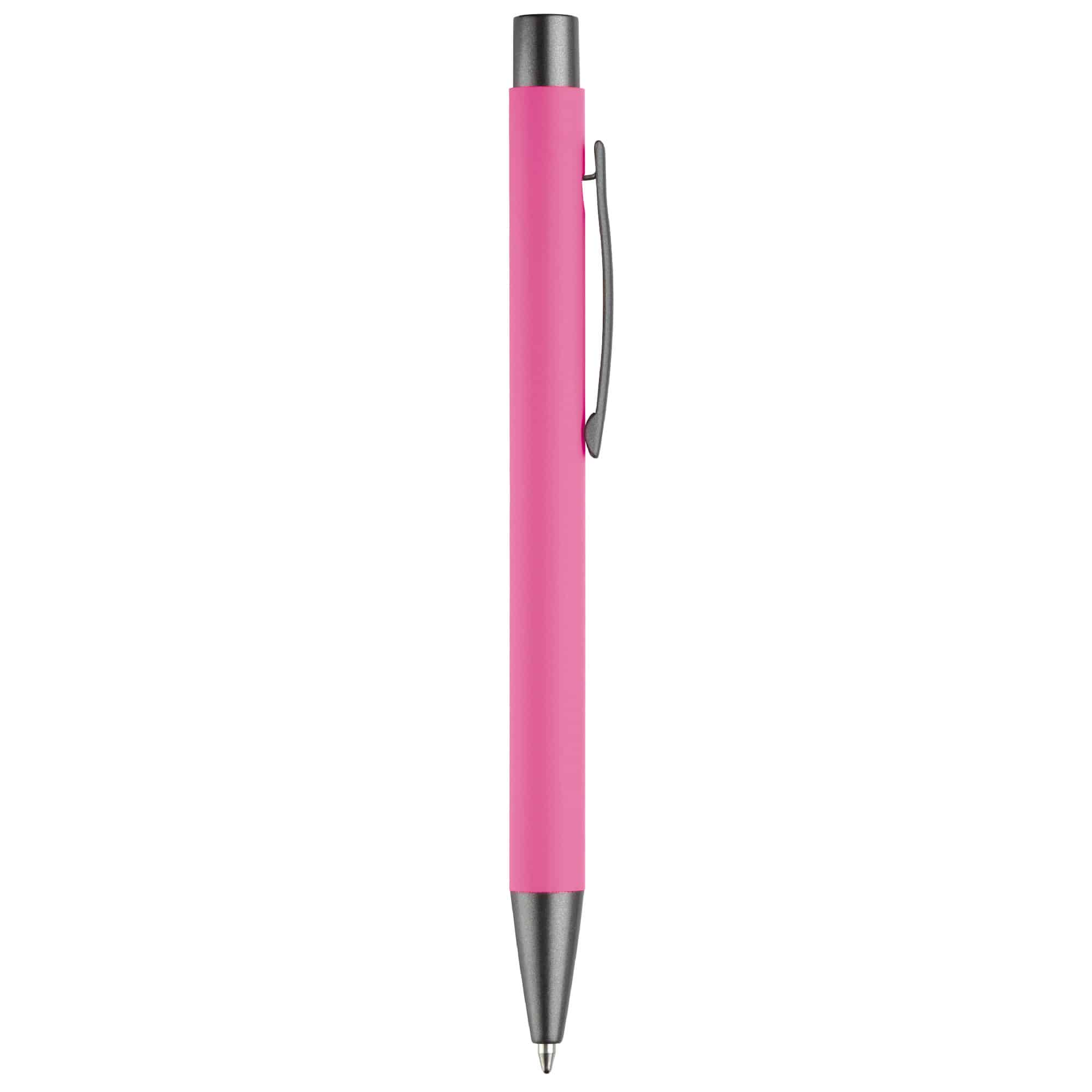Aluminium balpen met elegante rubberised soft-touch afwerking. Voorzien van stevige metalen clip en leverbaar in moderne kleuren. Blauwschrijvende vulling.