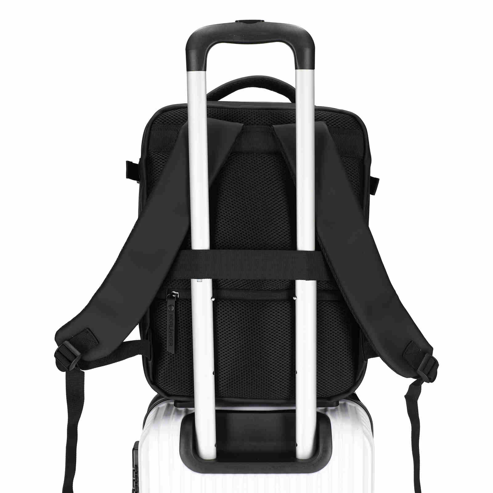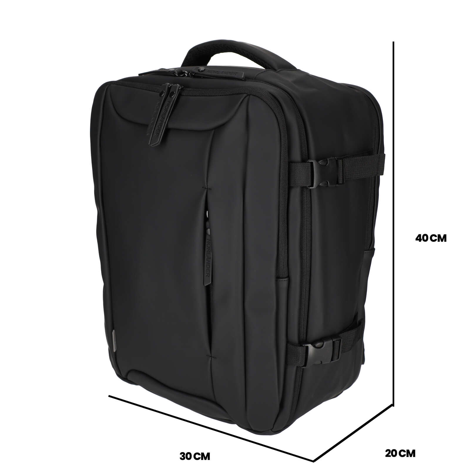 Compacte rugtas ontworpen om onder stoelen in het vliegtuig of in voertuigen te passen, zonder dat waardevolle ruimte verloren gaat. Gemaakt van gladde Dull PU, voorzien van waterafstotende ritsen en verstelbare banden, waardoor hij praktisch is én goed staat. De tas heeft genoeg compartimenten voor laptop, accessoires en dagelijkse spullen.