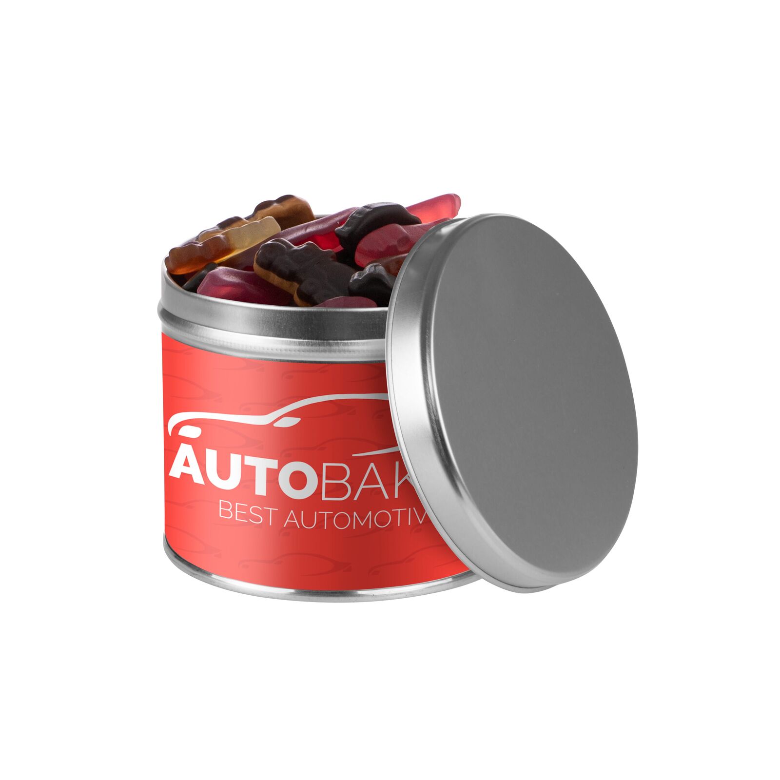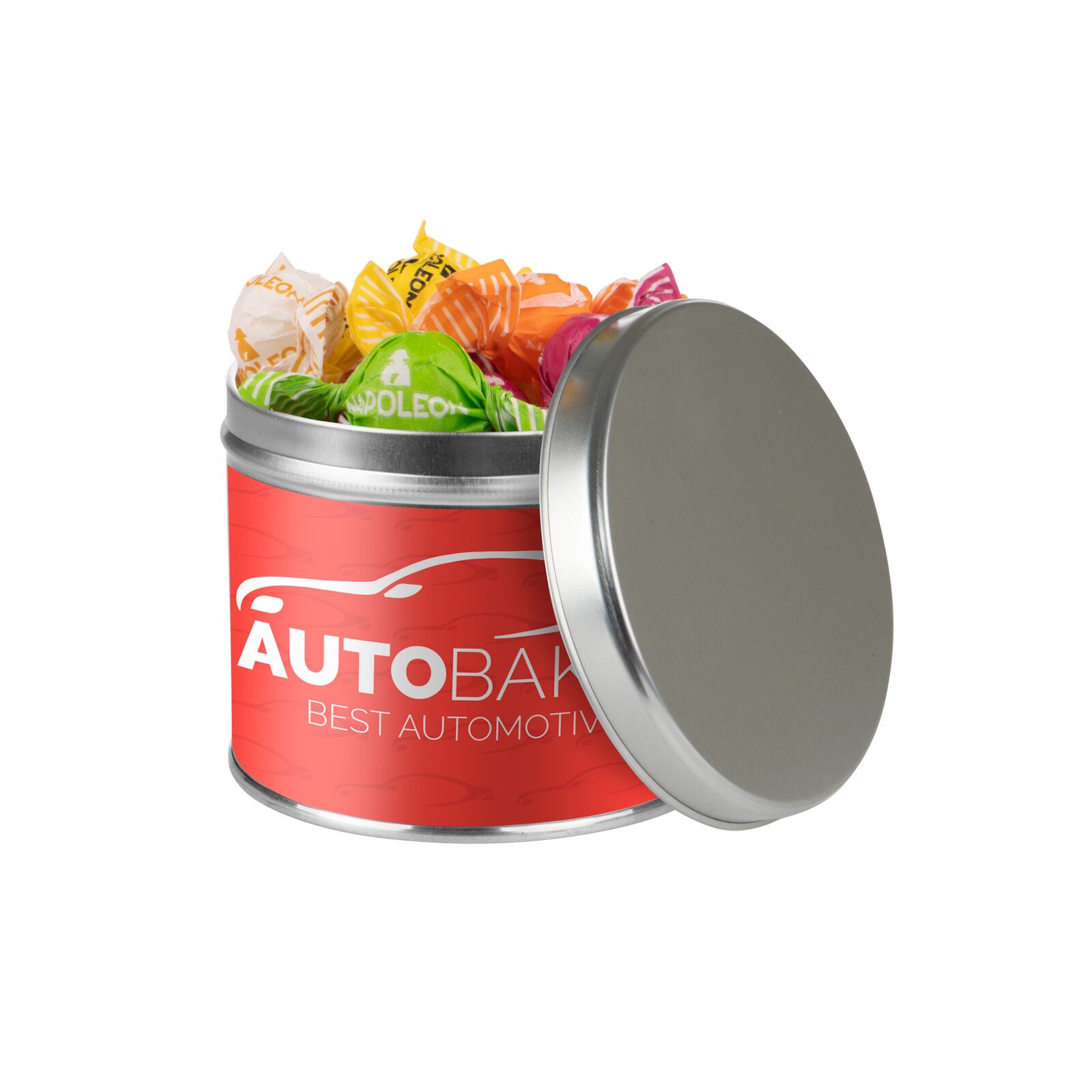 Een geweldig relatiegeschenk is het rond blik gevuld met heerlijk snoepgoed en voorzien van een full colour bedrukte, rondom geplakte sticker. Er is een scala aan diverse vullingen mogelijk