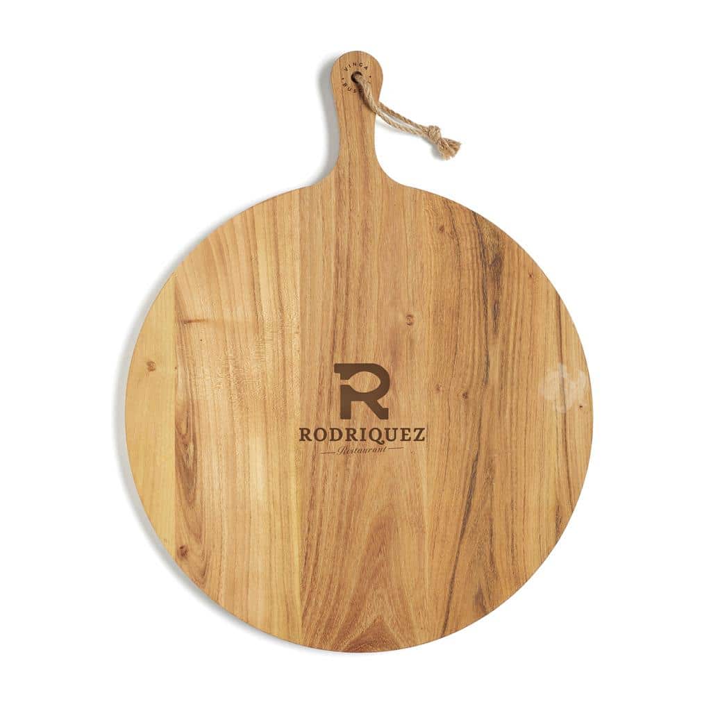 Een ronde snijplank van topkwaliteit, die dankzij het grote formaat ook kan dienen als serveerplank. Het handige handvat maakt het serveren eenvoudig. De plank is gemaakt van FSC-gecertificeerd teakhout en heeft een prachtig goudkleurig tot medium bruin houtoppervlak dat met de tijd donkerder wordt. Het hoge oliegehalte biedt een krachtige bescherming tegen bijvoorbeeld water en houdt het lange tijd in een goede conditie.