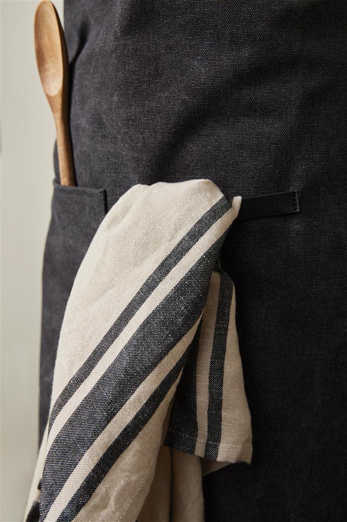 Schort gemaakt van 87% geverifieerd gerecycled materiaal. Dit stijlvolle schort is een praktisch keukenaccessoire met een mooi design – je hoeft geen compromissen te sluiten als het gaat om stijl, zelfs niet wanneer je het avondeten aan het koken bent! Het schort heeft een zak aan de voorkant en een lus waaraan je keukengerei of theedoeken kunt hangen, dus je hebt alles bij de hand tijdens het koken. Het schort heeft een zachte en verstelbare nekband voor extra comfort.